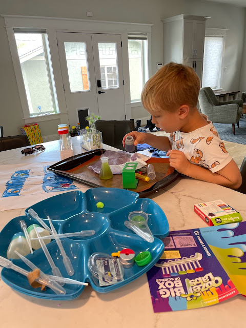 With the remodel, we didn't unpack most things until recently (and we are no where close to being done). On a snowy cold May day, with all our activities being canceled, B unpacked my science bin and had a great time!